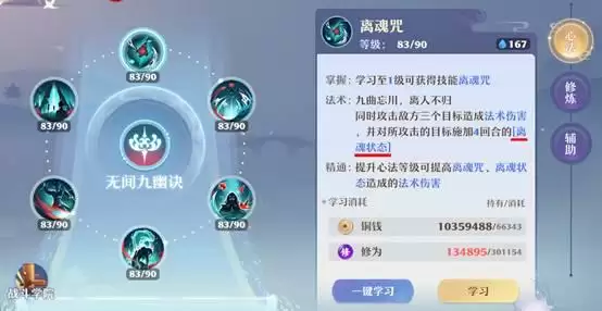 幽墟则是比较主动打爆发的流派,主输出的鬼道可点,尤其是双鬼道。幽墟可根据造成的法术伤害治疗己方群体,想用好该技能需要一定的操作。尽可能多叠加离魂咒状态,主目标可选没有离魂状态的。