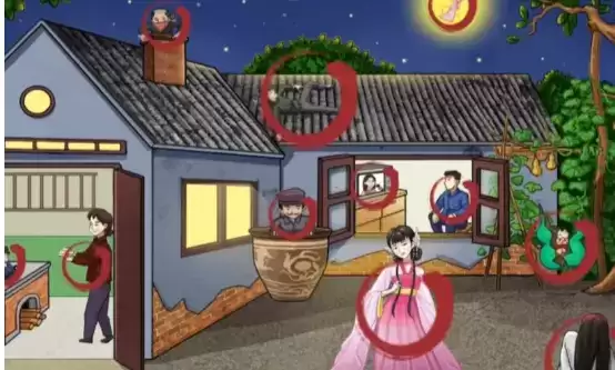 1、汉字找茬王老宅找人,需要找到所有藏起来的人,首先点击月亮上的人影