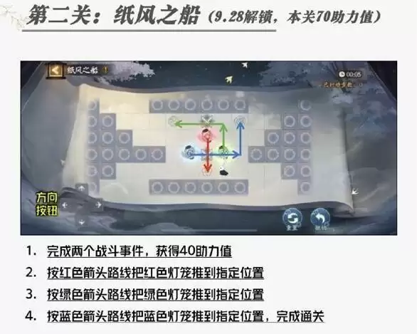 在阴阳师游戏中,福灯携行是本次中秋活动开启的一个全新玩法,我们在这个玩法中需要推动灯到指定的位置去,其中第二关纸风之船可能让很多小伙伴都被卡住了,那么阴阳师纸风之船怎么过呢?接下来就让我们一起来看看阴阳师福灯携行纸风之船路线吧。