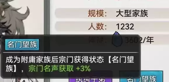 【名门望族】类型的附庸家族可以提供名声值加成。
