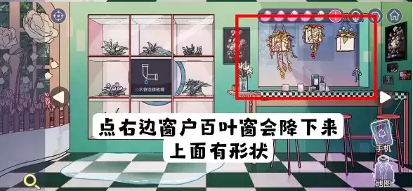 2、玩家回到玻璃植物的那个场景,点击右侧的窗户,百叶窗就会降下来;