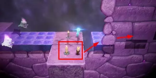 3.这里跟着倒影来到另一个蜡烛所在地并点燃,然后往左边走去,点燃里面的蜡烛后原路返回。
