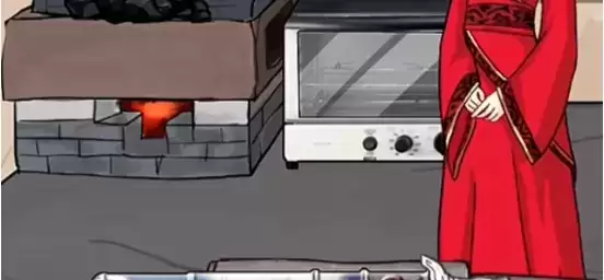 10、把剑雏形拖入火炉中烧红,再将其放到淬火桶里淬火