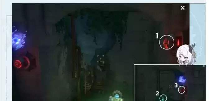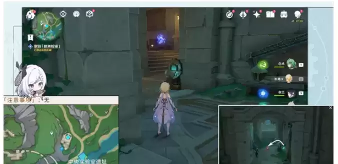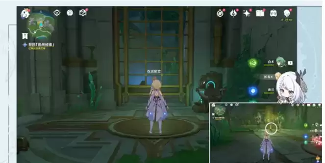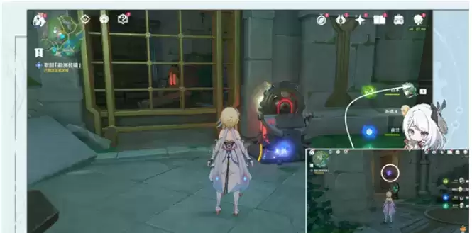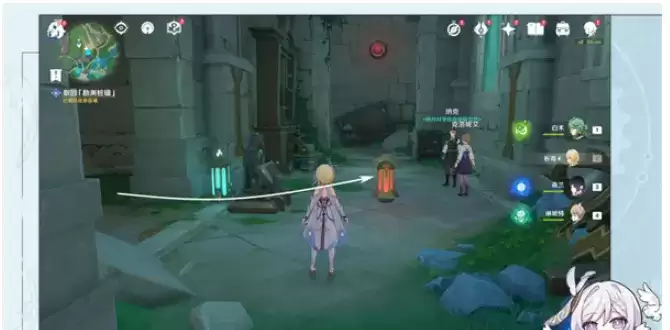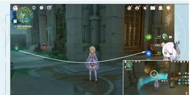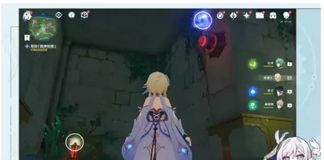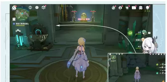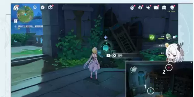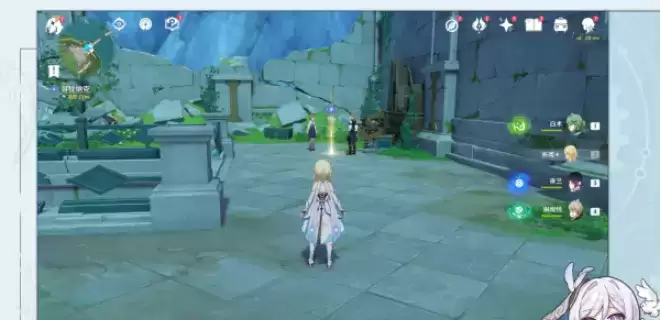 8.跟随指引,来到神像旁的遗迹,调查残垣旁的4个发光点。