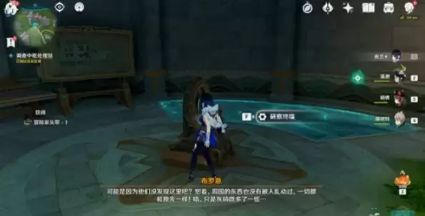 5、阅读「晶螺糕站」安全操作规范。操作研察终端,获取水文研究数据。然后与布罗意对话。既可以完成。