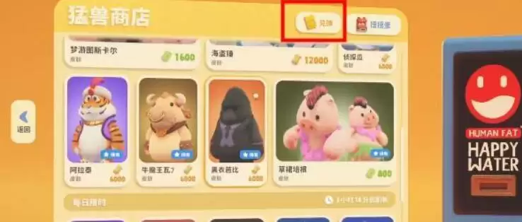 2、在猛兽商店中,点击兑换,输入兑换码,点击确定。