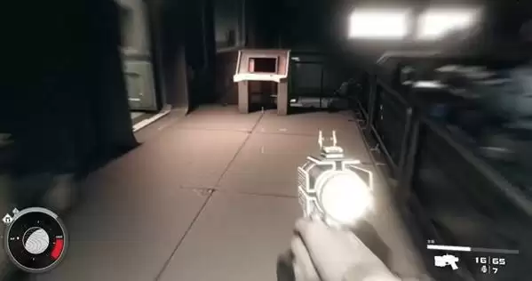 2、降落之后直接往里面走就可以了。使用机关可以打开门,然后往左边走。