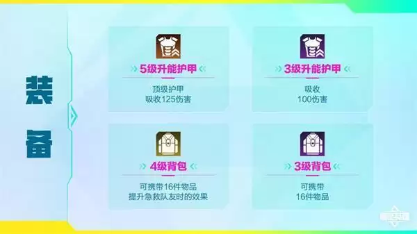 1、装备:其中「5级升能护甲」为支援仓专属物品