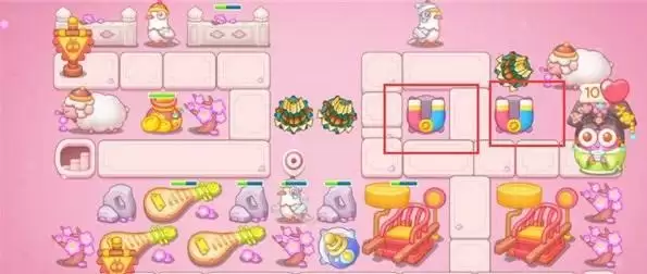 3、第四波放在下面多重箭和冰锥塔,在左边这个地方放一个磁铁,顺带把左边的道具都清除。