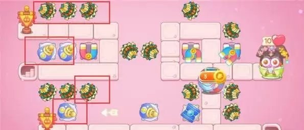 2、第二波和第三波分别一左一右放上磁铁,再放上一个多重箭,在打兔子的同时,也能消除附近的障碍物。