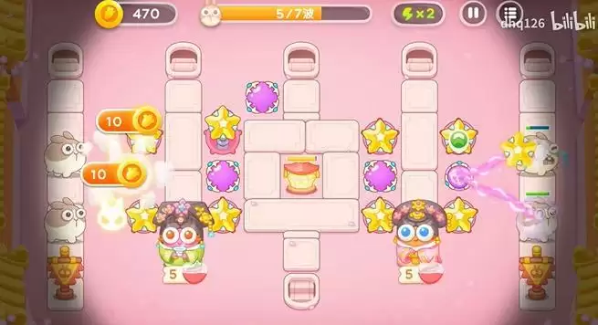 2、需要放上几个星星塔,不然后会有飞翔的兔子溜过去。