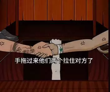 2、第二个手,穿着黑色皮鞋、手上有伤疤、纹身。