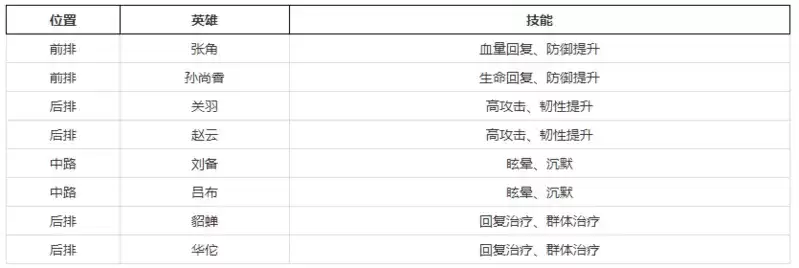 1. 前排坦克:与其它英雄相比,前排坦克的生命值和防御力都较高,能吸引敌人的攻击。推荐选择张角或孙尚香作为三国群英传争霸50级阵容前排坦克,他们都拥有强大的生命回复和防御技能。