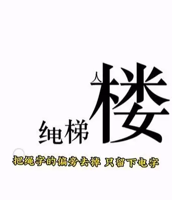 3、把绳字的口和绞丝旁去掉,变成电字,这样就变成了电梯。