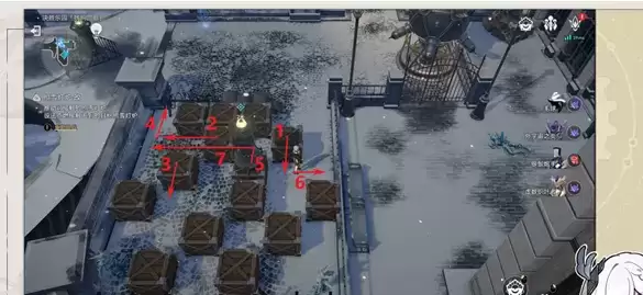 6.按下图顺序移动木箱即可完成解密,有个宝箱可以顺手拿了。