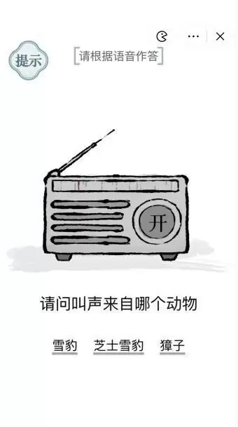 1、点击收音机上的开,我们听到动物的叫声