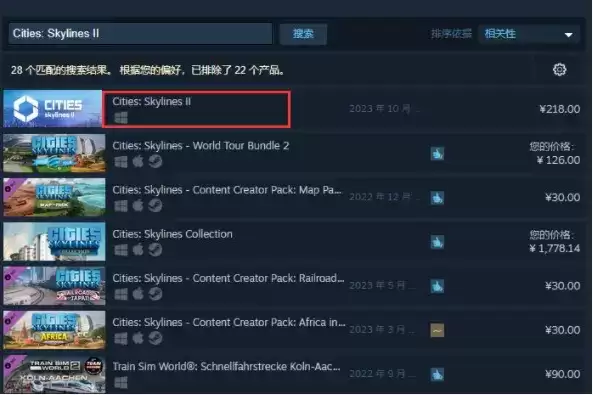 2、第一个游戏Cities: Skylines II这个就是我们要买的。