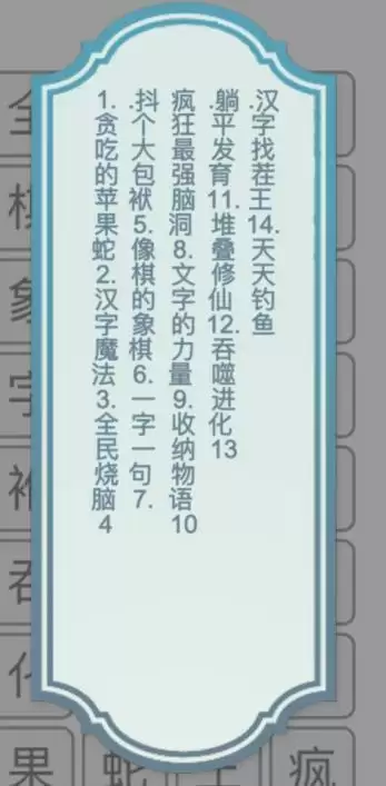 汉字魔法、全民烧脑、一字一句、文字的力量,收纳物语、汉字找茬王