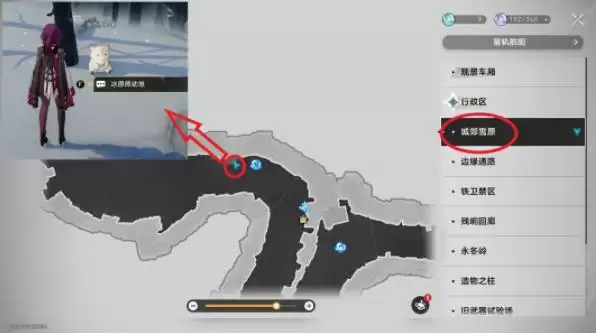 1、来到城郊雪原,可以在红圈处找到副本旁的“冰原熊幼崽”。