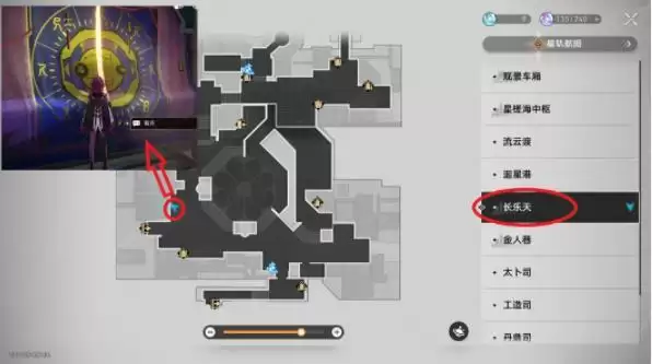 1、玩家来到长乐天,可以在红圈处找到“若月”。