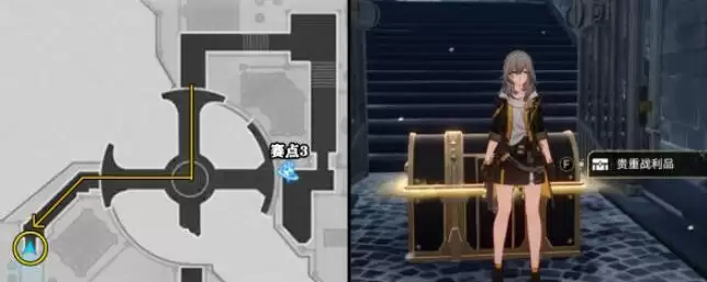 五号宝箱:与图示位置控制装置交互,顺时针或逆时针旋转两次即可来到宝箱位置。