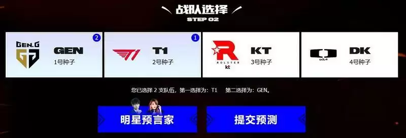 3、之后我们就可以选择赛区以及战队进行投票了,快来为你喜欢的战队预测吧。