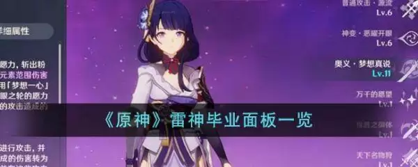 原神雷神毕业面板是怎么样的?这个角色的玩法还是比较多样的,但是对于她的面板要求还是差不多的,接下来小编就来将原神雷神的毕业面板介绍在下方,有需要的小伙伴可以来了解一下。