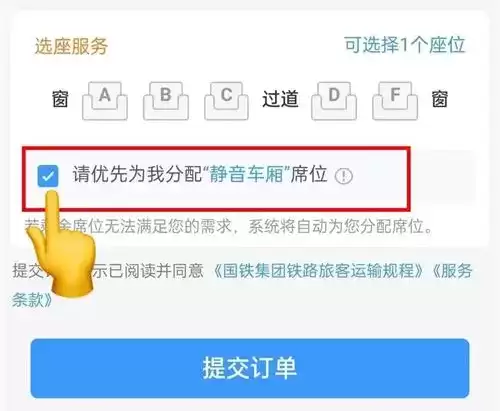 3、然后在购买票的时候也可以把下面的优先分配静音车厢勾选上就可以了。