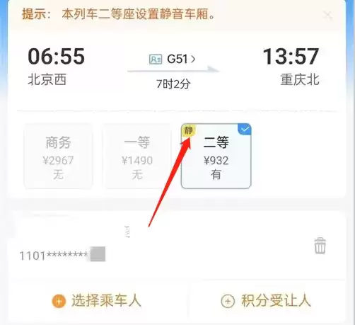 高铁静音车次怎么买票