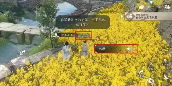 1、玩家需要前往磁州的油菜花田,之后需找到徐云客并向他展示道具文房四宝;
