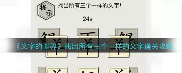 文字的世界找出所有三个一样的文字通关攻略