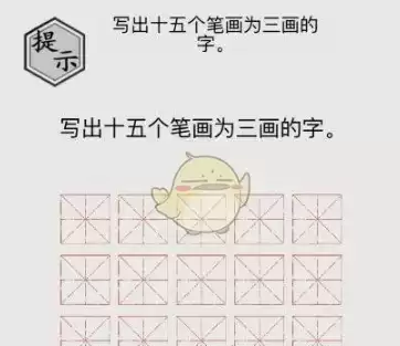 1、这一关玩法有所不同,需要我们写出15个笔画只有3画的字