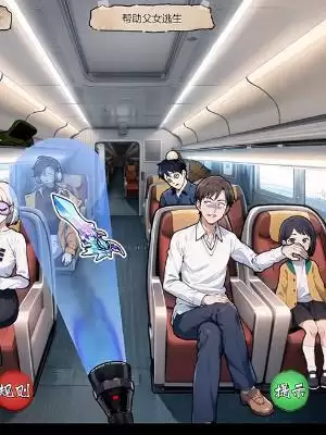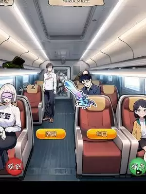 4、我们接着在车厢行李架上找到纸条规则,然后将黑色包里的手电筒拖出来照在听歌男人脸上,然后将黑色包里的红色物件丢出去,最后关闭车厢门用扫把挡住。