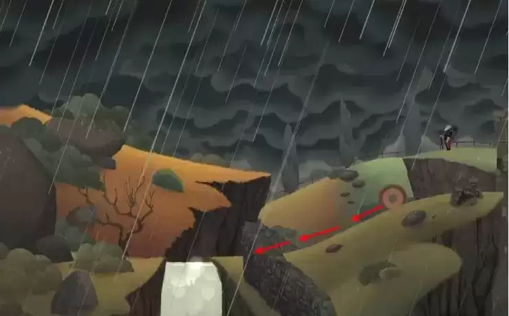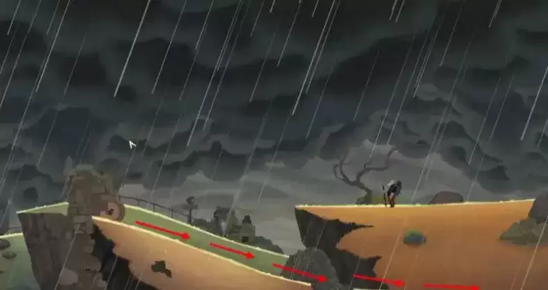 1、此关开始就下着大雨,这个和主线剧情发展也是有关的。首先我们控制老人离开原本那条路,站到紧挨着的那条路上。