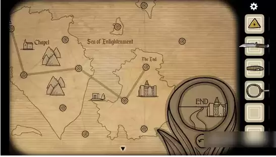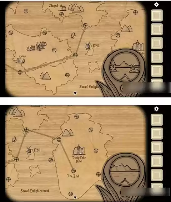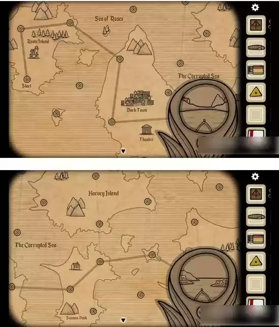 右下角每点一次会出现一个画面,你可以理解为每次行动的路线刚好能看见画面上的东西,比如房子在左边,树在右边之类的。