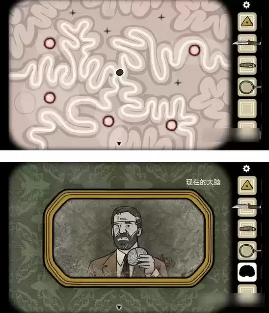 里面是大脑。里面的小游戏是个塔防游戏,不让小虫子进入中间的洞