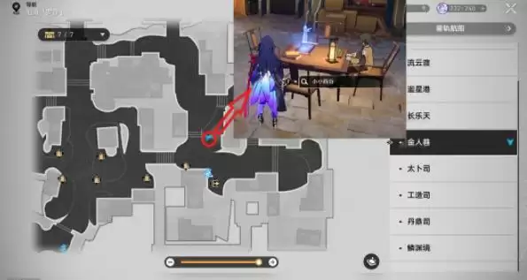 1、来到金人巷,于下图红圈处找到桌上的“小小西衍”(全息投影)。