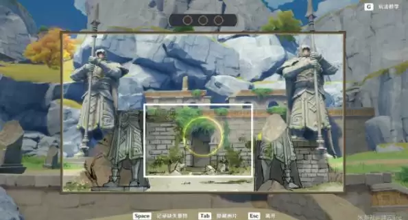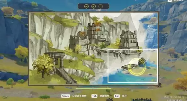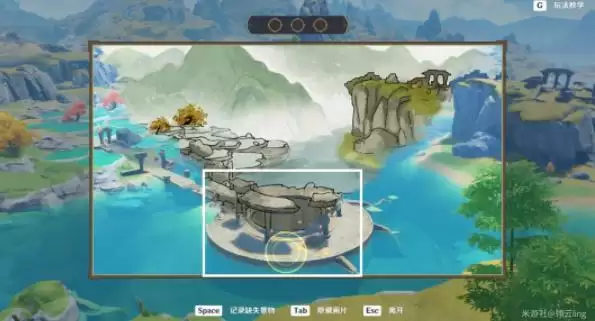 ⑤将画片对准右下角的遗迹亭台。