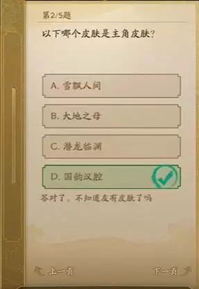问2:以下哪个皮肤是主角皮肤?