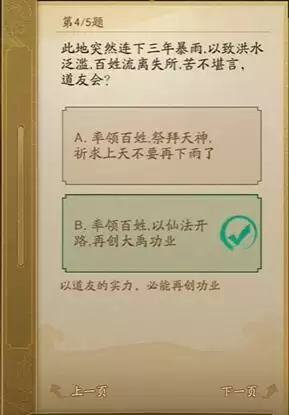 问4:此地突然连下三年暴雨,以致洪水泛滥,百姓流离失所,苦不堪言,道友会?