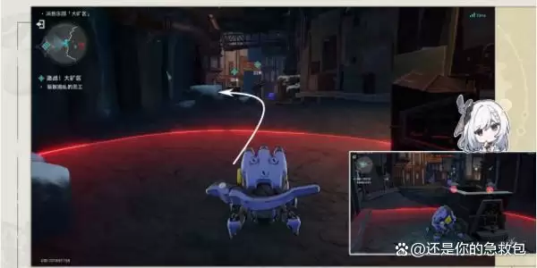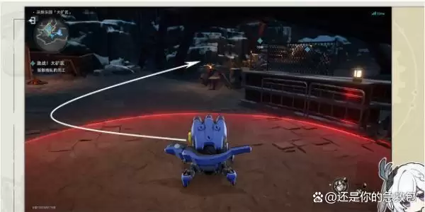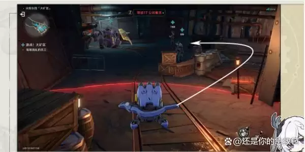 3、接着我们跟随指引来到下一处,同样是等雇员往回走时,我们绕到矿车后面引爆自爆机器兵即可。