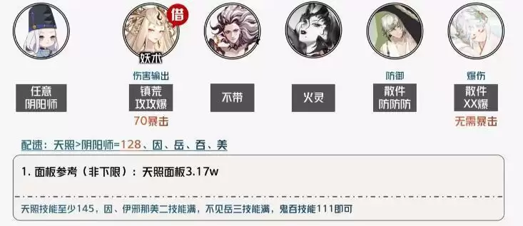 前期阵容:任意阴阳师、借妖术输出、不带、火灵、散件防防防、散件爆、散件