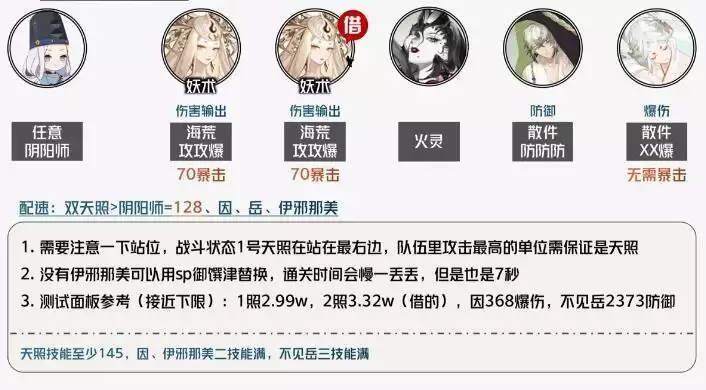 短线战斗阵容(sp荒处的演武练习、战斗事件的简单模式、天羽羽斩结界和秘境山洞的蛇魔战斗)
