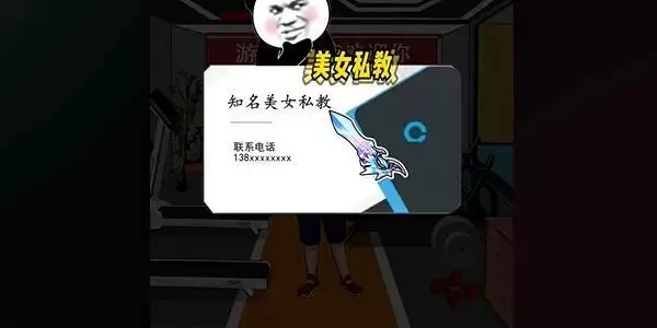 1、首先男人的肚子,然后从右边的桌子上点击美女教练名片。