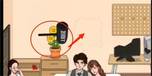 3、点击地上的锤子先锤碎花盆,发现里面的保险柜密码,然后点击锤子再锤碎墙壁,输入保险柜密码,点击里面的钱。