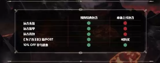 预购与本体区别为:三件远古装备,以及原声OST有无的区别。