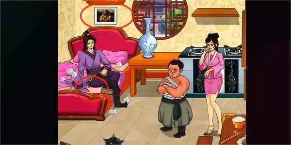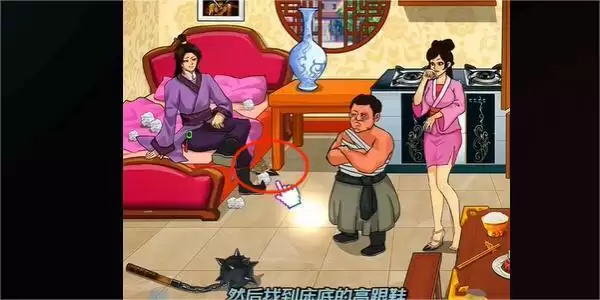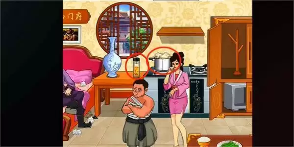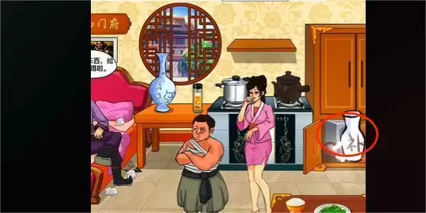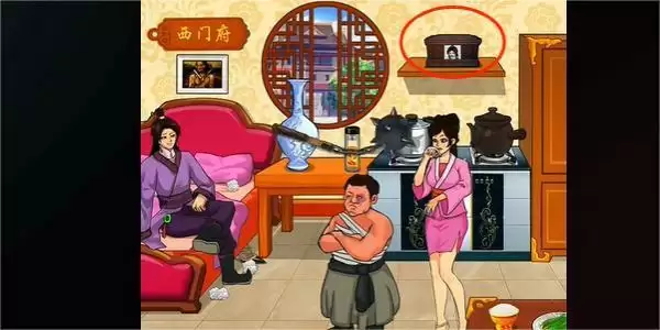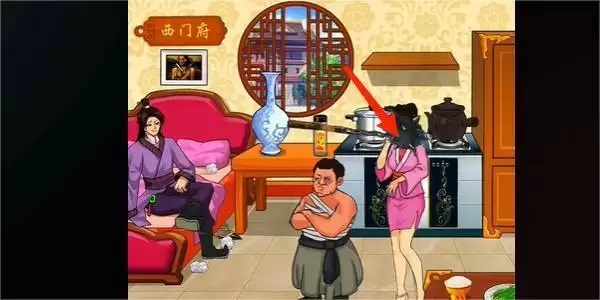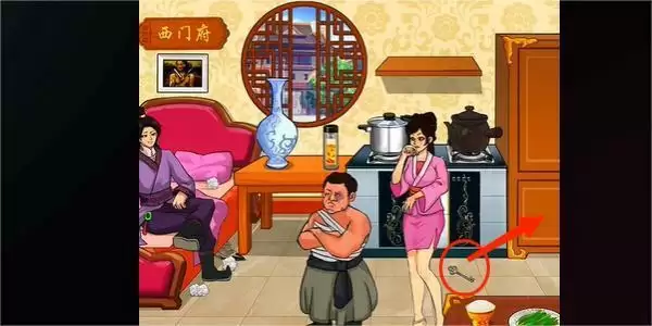 4.点击桌上的韭菜,床下面的高跟鞋,再点击墙上的画,然后在西门庆的下面点击地契,即可通关。