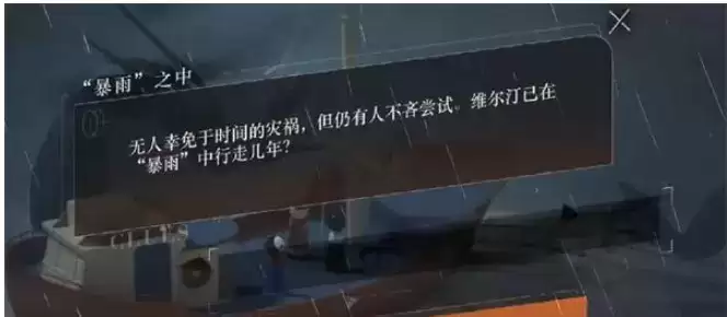 重返未来1999暴雨之中答案是很多玩家关心的,大家想要知道这个答案是什么。不清楚这个答案的小伙伴们,其实这个答案还是很简单的,想要知道这个答案是什么的,就让小编给大家详细的讲讲吧。
