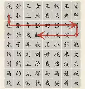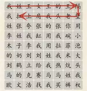 1、第一句【我姓王女王的王隔壁老头我肩上扛】。