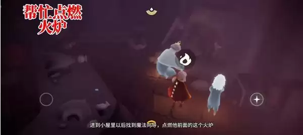 4、接着我们在小屋里找到魔法向导,点燃面前的炉子;火炉产生的能量会打开一扇暗门,玩家会跟随先祖继续来到另一个房间。